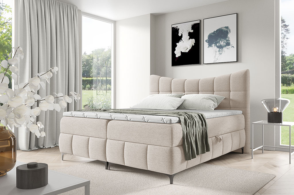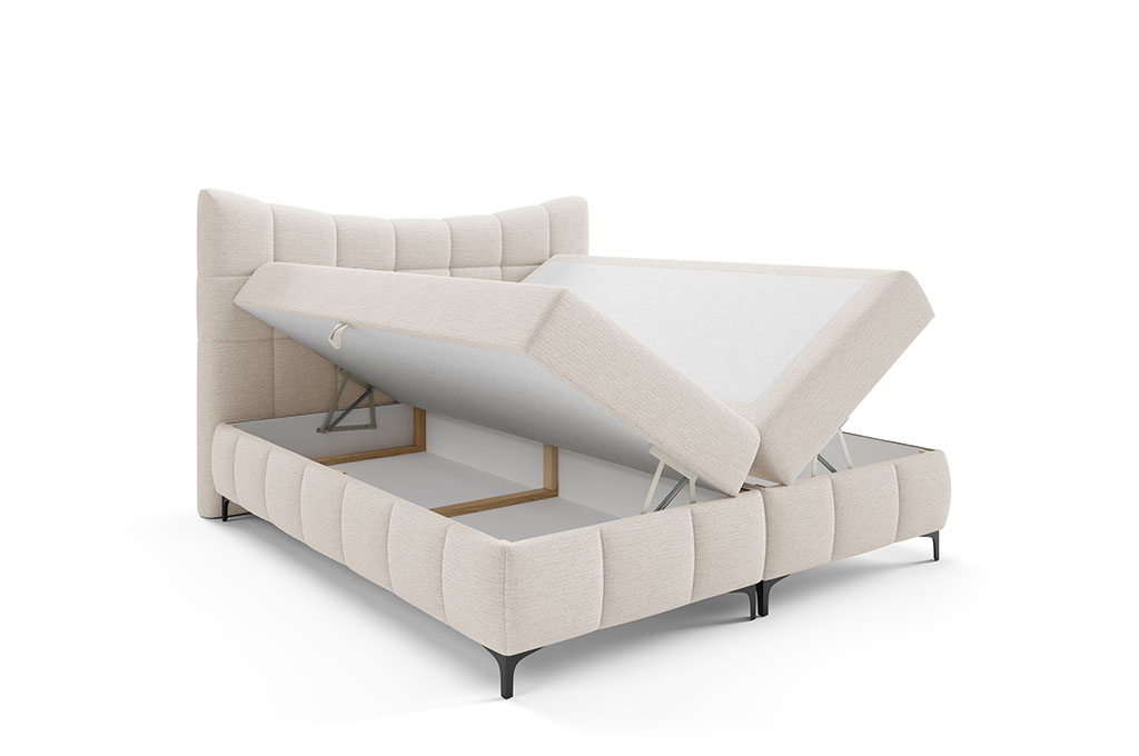 Łóżko kontynentalne na metalowych nóżkach z pojemnikami na pościel w tkaninie ARAGON NOX 200x200