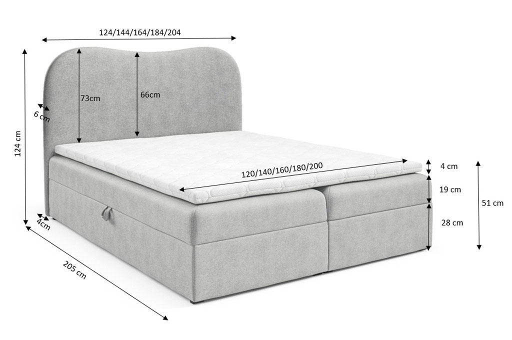Łóżko kontynentalne z pojemnikami na pościel w tkaninie GERRA ANIELA LUX 160x200