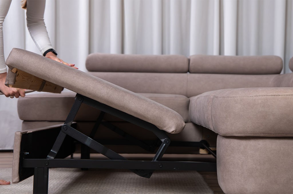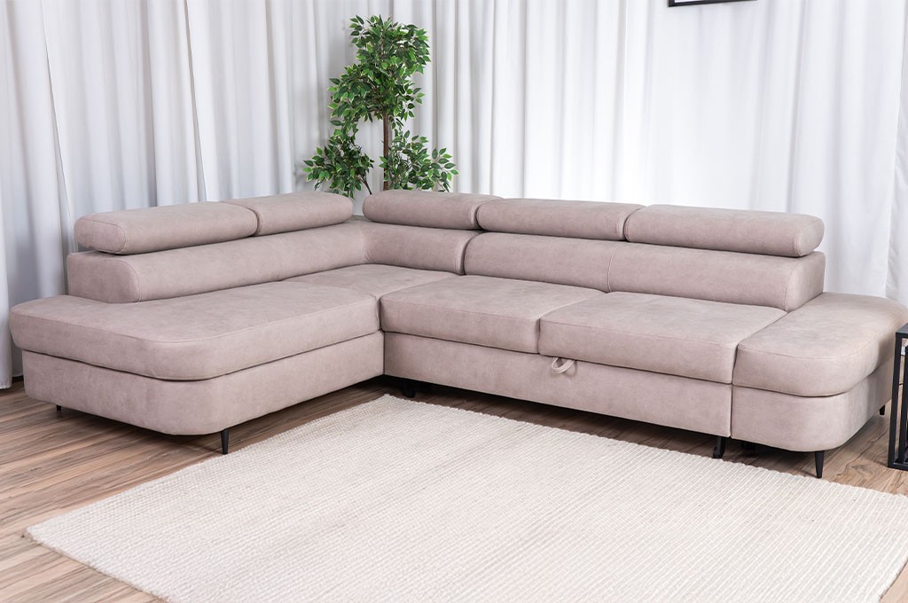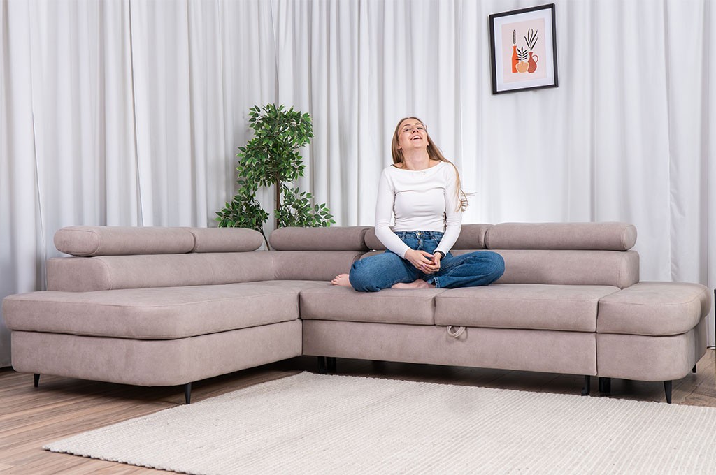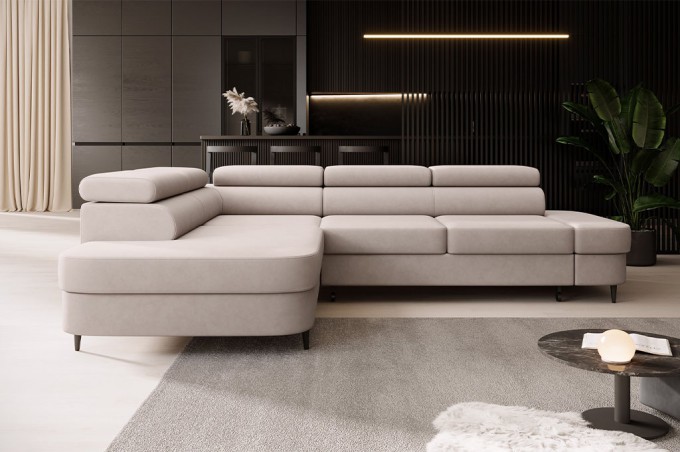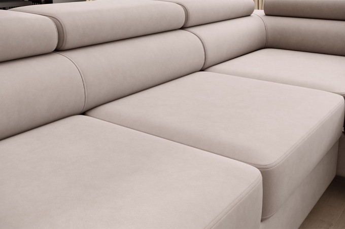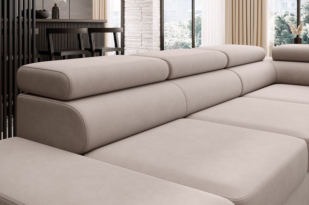 Mechanizmy regulacji są trwałe, ciche i bardzo proste w obsłudze, co sprawia, że codzienne korzystanie z narożnika jest jeszcze bardziej komfortowe.