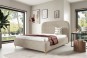Tapicerowana konstrukcja została uzupełniona o efektowne wezgłowie z zaokrąglonymi rogami, które nadaje bryle miękkości i wyjątkowej lekkości wizualnej. Ten detal nie tylko podkreśla nowoczesny charakter łóżka, ale również zapewnia wygodne oparcie podczas odpoczynku, czytania czy oglądania ulubionych seriali.