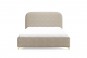 Model osadzony jest na smukłych, metalowych nóżkach w eleganckim złotym kolorze, które dodają całości wyrafinowanego charakteru. Dzięki nim łóżko prezentuje się lekko i stylowo, jednocześnie zachowując stabilność oraz trwałość konstrukcji.