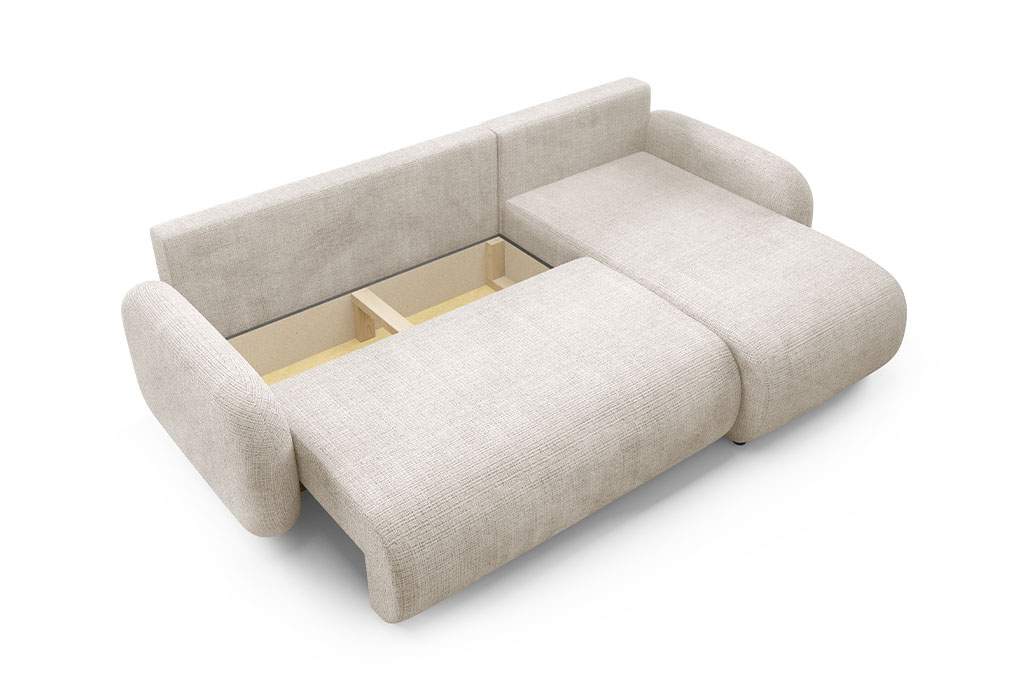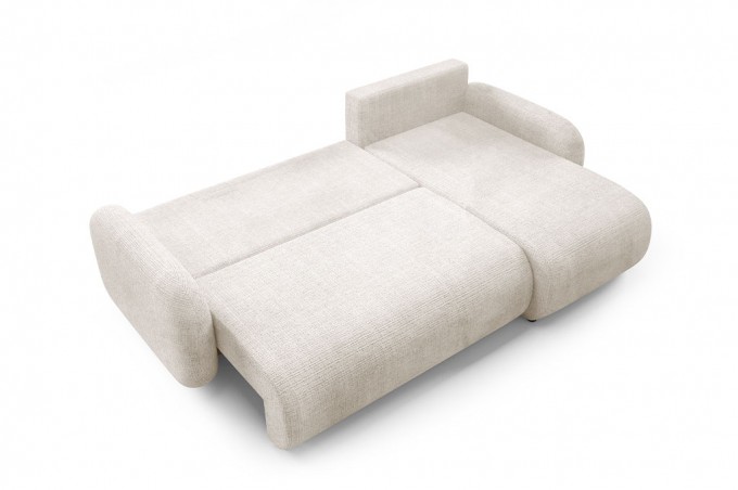 Model CONAN wyposażono w funkcję spania z automatem typu MOS, która umożliwia szybkie, lekkie i intuicyjne rozkładanie narożnika. Po rozłożeniu uzyskujemy wygodną powierzchnię do spania o wymiarach 123 × 202 cm, idealną zarówno do okazjonalnego, jak i częstszego użytkowania. Dodatkowym atutem jest praktyczny pojemnik na pościel o wymiarach 126 × 62 × 24,2 cm, doskonały do przechowywania kołder, poduszek i innych tekstyliów.