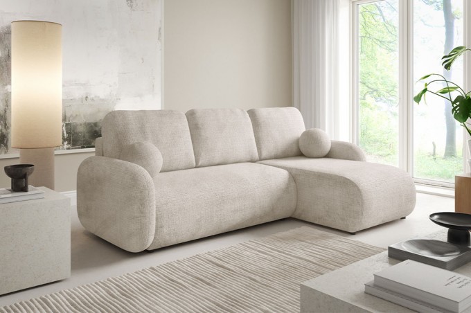 Narożnik został wykonany w tkaninie Cremona, wyróżniającej się trwałością, przyjemną strukturą oraz eleganckim wyglądem. Materiał ten jest odporny na codzienne użytkowanie i łatwy w utrzymaniu, dzięki czemu mebel przez długi czas zachowuje estetyczny wygląd.