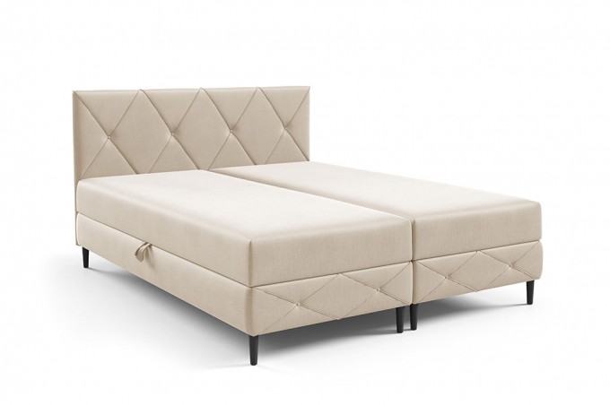 Łóżko kontynentalne na metalowych nóżkach z pojemnikami na pościel w tkaninie ROUGE GENOVA 160x200