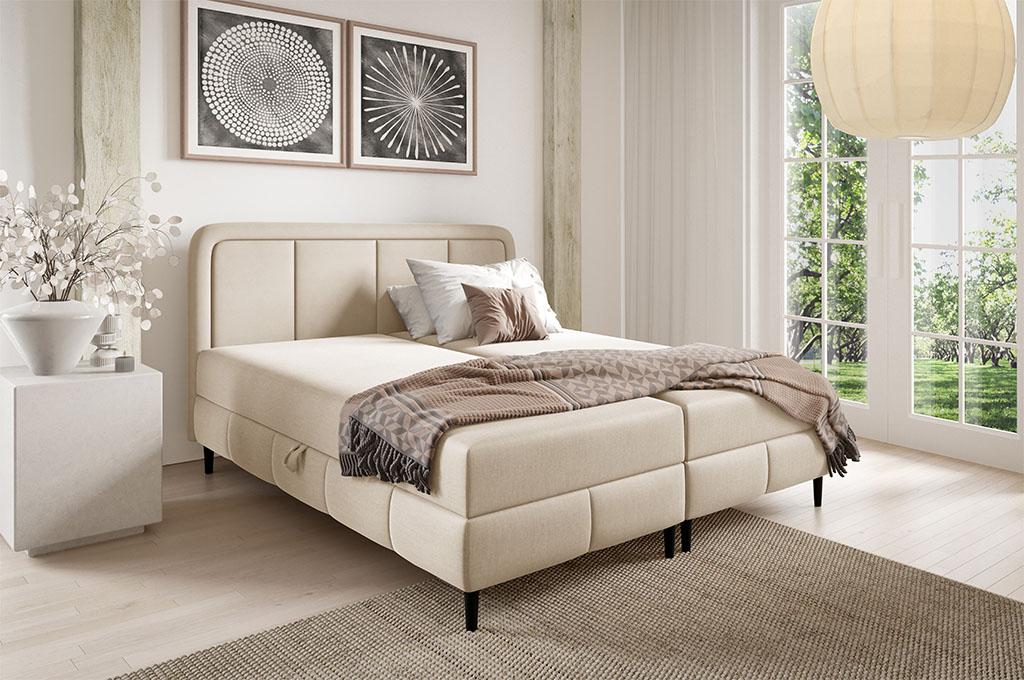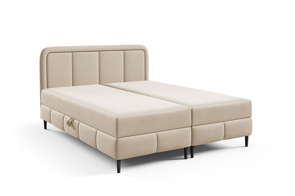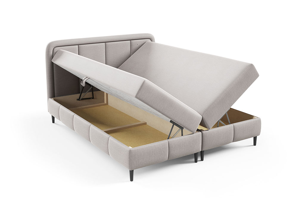 Łóżko kontynentalne na metalowych nóżkach z pojemnikami na pościel w tkaninie ROUGE LOTTA 200x200
