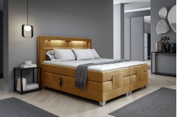 Dodatkowym udogodnieniem jest oświetlenie LED o zimnej barwie, sterowane pilotem, które wprowadza nowoczesny klimat do sypialni i zwiększa funkcjonalność łóżka po zmroku.