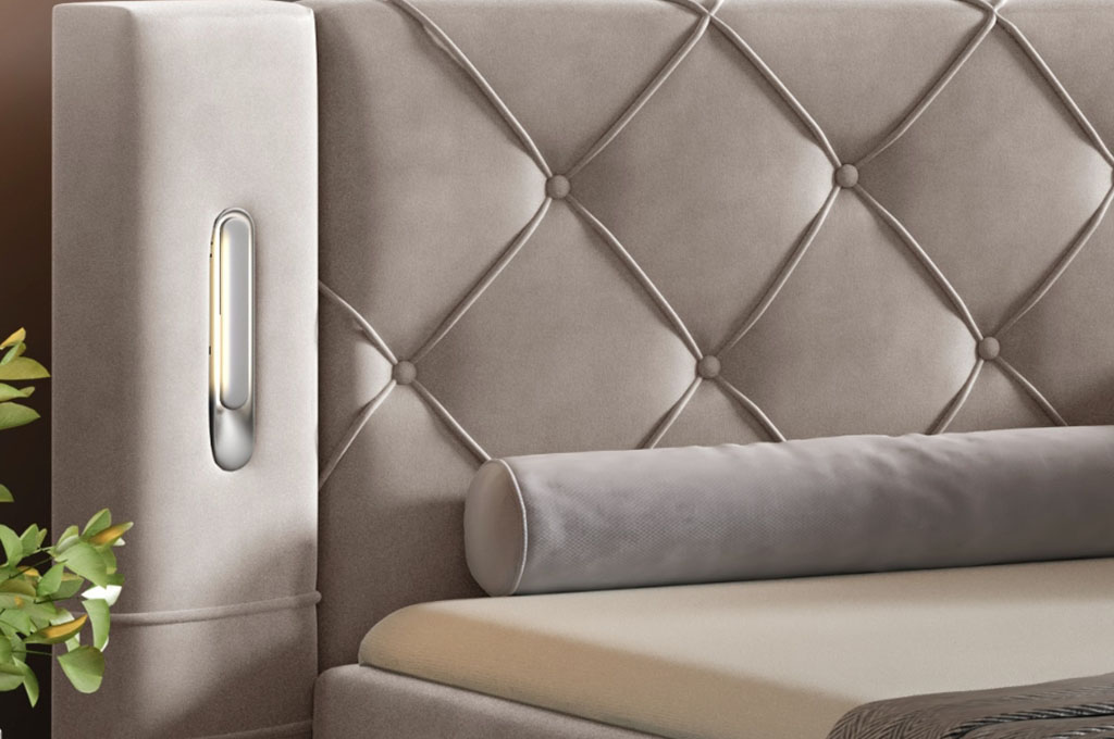 Dodatkowym atutem łóżka jest nowoczesne oświetlenie sensoryczne, sterowane za pomocą dotyku. Subtelne światło wprowadza przytulny klimat do sypialni, a jednocześnie zwiększa funkcjonalność łóżka po zmroku, ułatwiając poruszanie się bez konieczności włączania głównego oświetlenia.