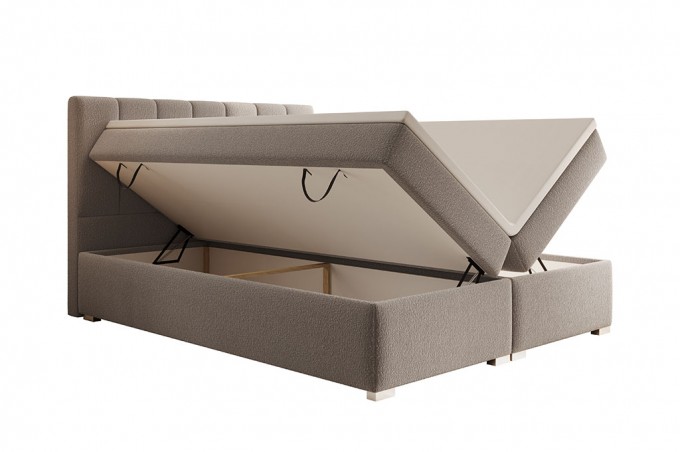 Łóżko kontynentalne CELINE zostało wyposażone w funkcjonalne pojemniki na pościel, które pomagają utrzymać porządek i maksymalnie wykorzystać dostępną przestrzeń. Umieszczone po bokach łóżka, oferują dużą pojemność oraz wygodny dostęp do przechowywanych rzeczy.