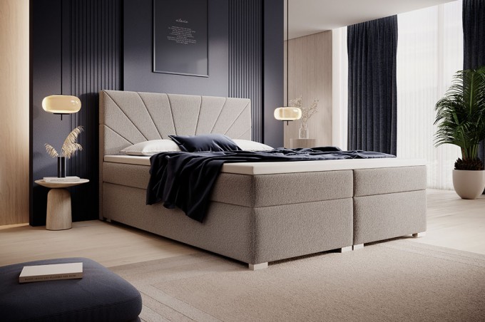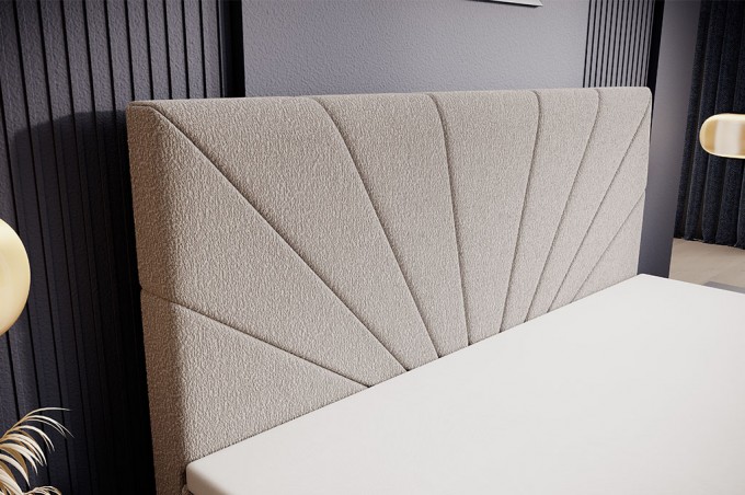 Model MADDIE wyróżnia się efektownym wezgłowiem z dużymi, eleganckimi przeszyciami, które nadają mu wyjątkowego charakteru i podkreślają jego stylowy wygląd. To detal, który sprawia, że łóżko staje się centralnym punktem każdej sypialni, przyciągając wzrok i dodając wnętrzu elegancji.