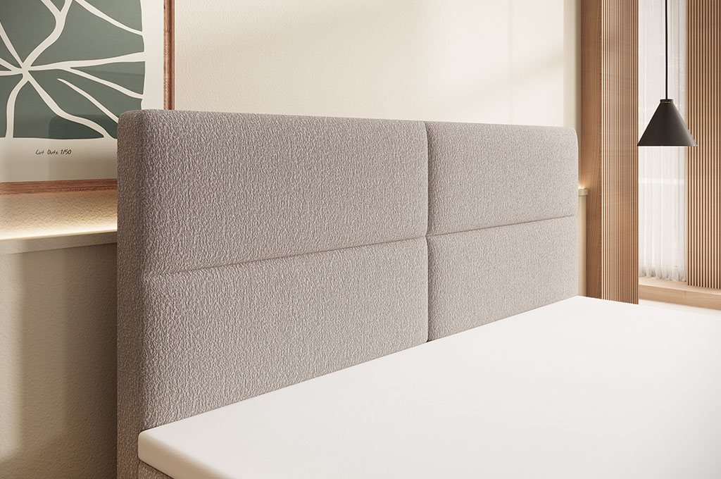 Model ODETTA wyróżnia się efektownym wezgłowiem z dużymi, eleganckimi przeszyciami, które nadają mu wyjątkowego stylu i podkreślają jego luksusowy charakter. To detal, który przyciąga wzrok i sprawia, że łóżko staje się centralnym punktem każdej sypialni, dodając jej elegancji i przytulności.