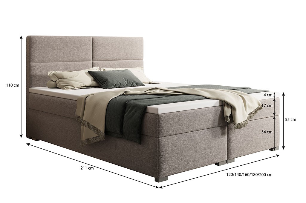 • Szerokość całkowita wezgłowia: 120/140/160/180/200 cm - zależna od wybranego rozmiaru powierzchni spania