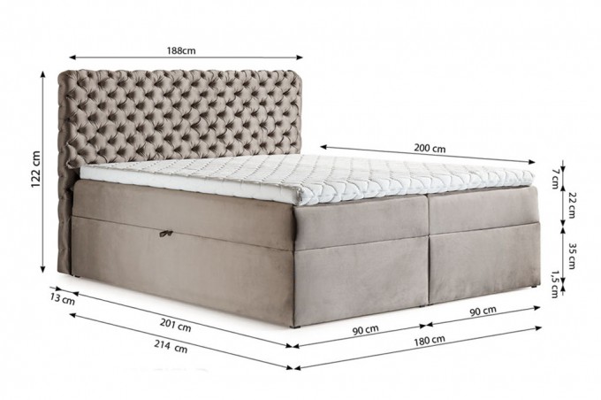 Model ten olśniewa ciekawą formą – mocny korpus z pikowanym wezgłowiem, w komplecie znajduje się najwyższej jakości wbudowany materac kiezszeniowy oraz topper, które zostały wykonane z pianki wysokoelastycznej wzmocnionej sprężynami kieszeniowymi, co zapewni Ci niezwykle komfortowy wypoczynek. Konstrukcja ta bowiem perfekcyjnie dopasuje się do Twojego ciała, jednocześnie nie przenosząc obciążeń na drugą stronę łóżka.