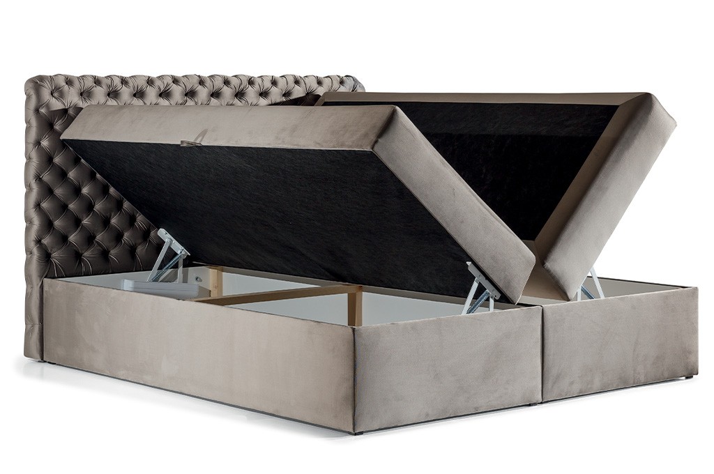 Mebel ten wyposażono także w dwa obszerne pojemniki, w których przechowasz dodatkową pościel. Ten model wyposażono w automaty otwierające pojemniki na sprężynach, zatem otwieranie ich będzie niemalże bezproblemowe.