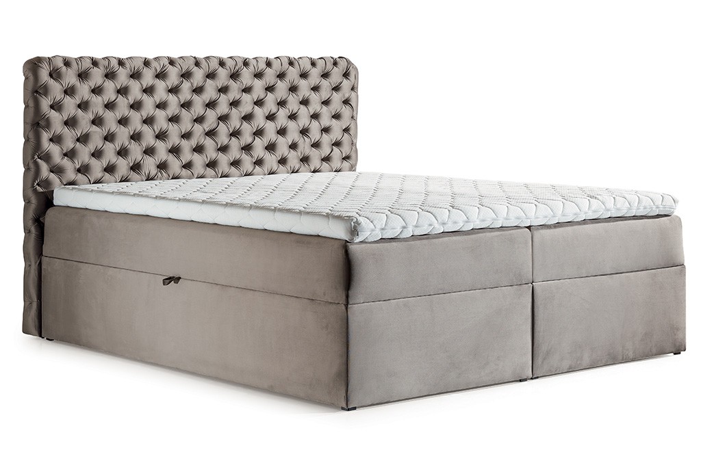 Łóżko kontynentalne z pikowanym wezgłowiem, pojemnikiem na pościel i materacem CHERSTER 140x200