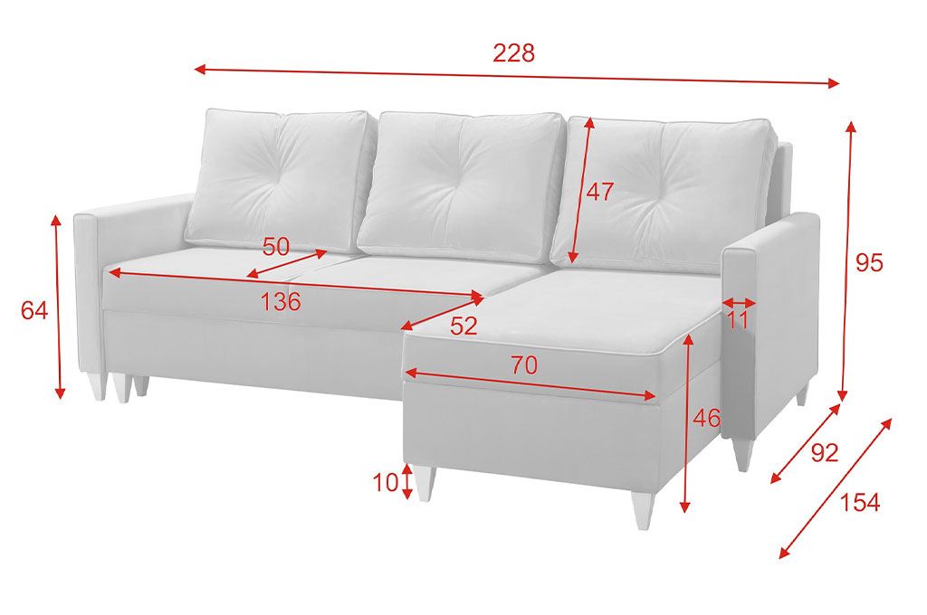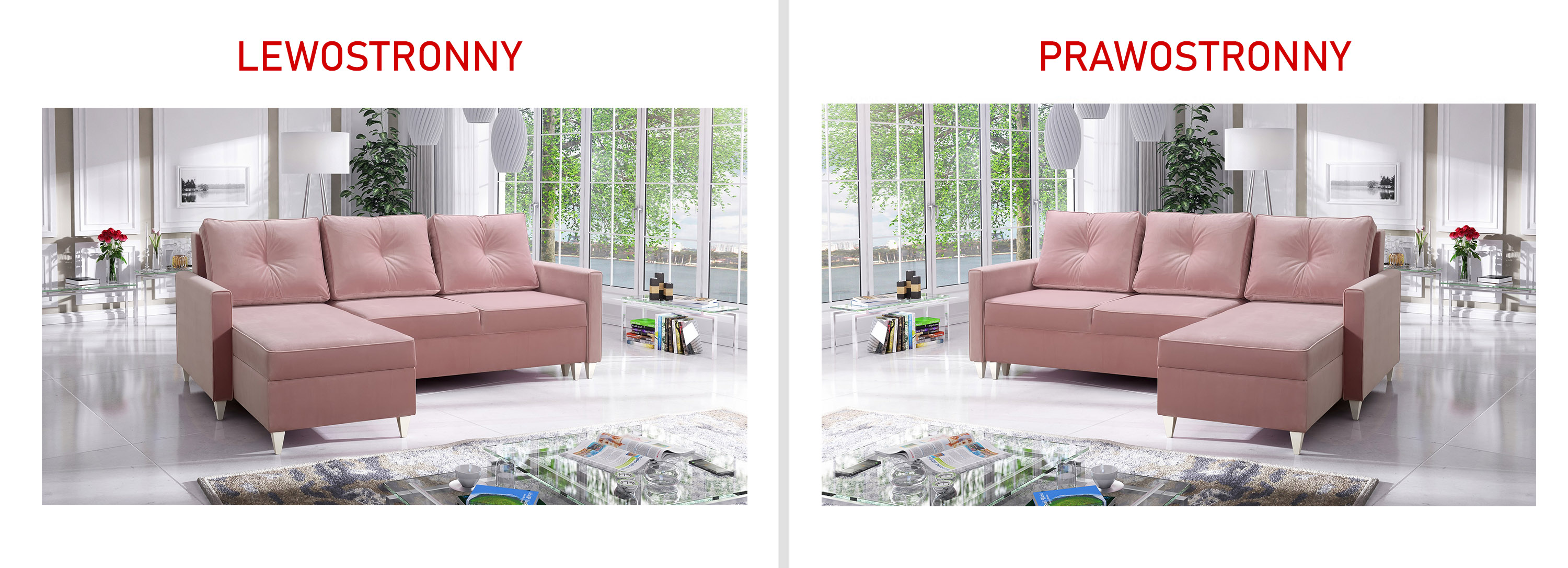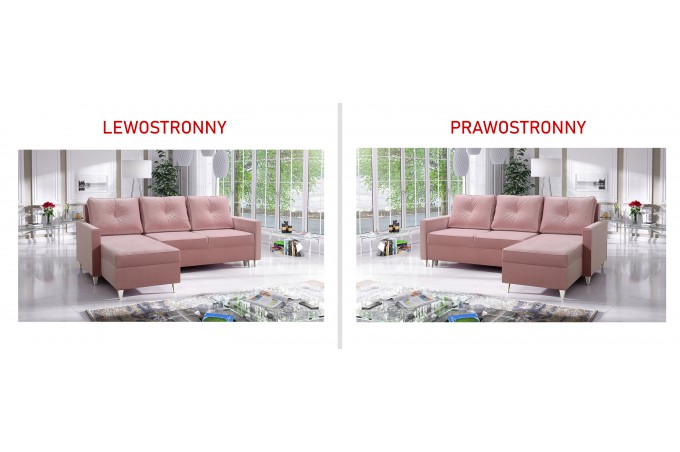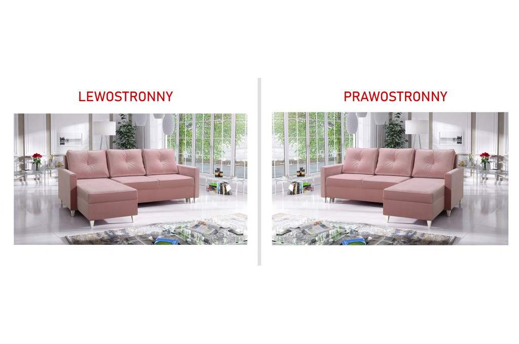 Możliwość wyboru strony narożnika (lewej lub prawej) pozwala idealnie dopasować narożni do układu pomieszczenia i indywidualnych potrzeb użytkownika.