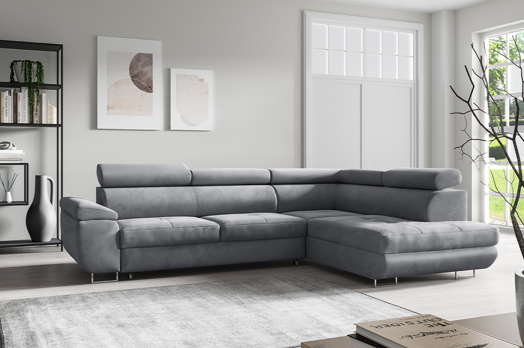 Narożnik dostępny jest w wersji lewostronnej lub prawostronnej, aby idealnie dopasować się do Twojego wnętrza. Stronę narożnika określamy, stojąc przodem do mebla – jeśli część z szezlongiem znajduje się po Twojej lewej ręce, to narożnik jest lewostronny, a jeśli po prawej – prawostronny. Dzięki temu możesz wybrać układ, który najlepiej wykorzysta przestrzeń i zapewni Ci maksymalny komfort.