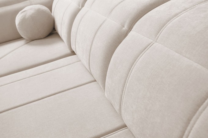 Tył obity tkaniną to element, który podkreśla staranność wykonania narożnika RAFAEL I i pozwala na jego ustawienie w dowolnym miejscu w salonie – nawet na środku pomieszczenia. Dzięki temu mebel prezentuje się elegancko z każdej strony, a cała bryła zachowuje spójny, nowoczesny wygląd. To rozwiązanie zwiększa funkcjonalność mebla, jednocześnie dodając mu lekkości i estetyki.