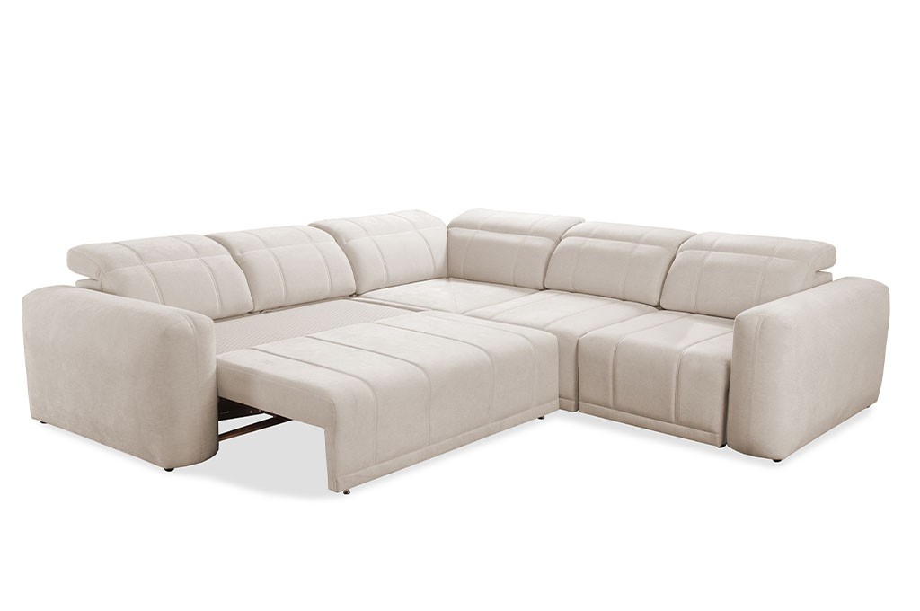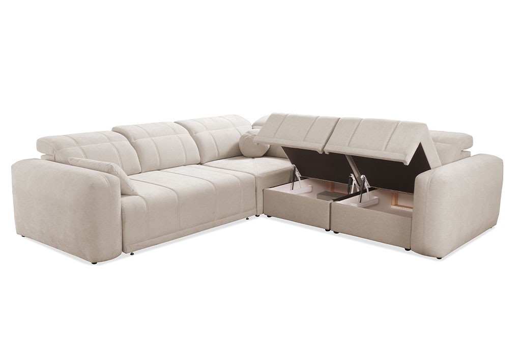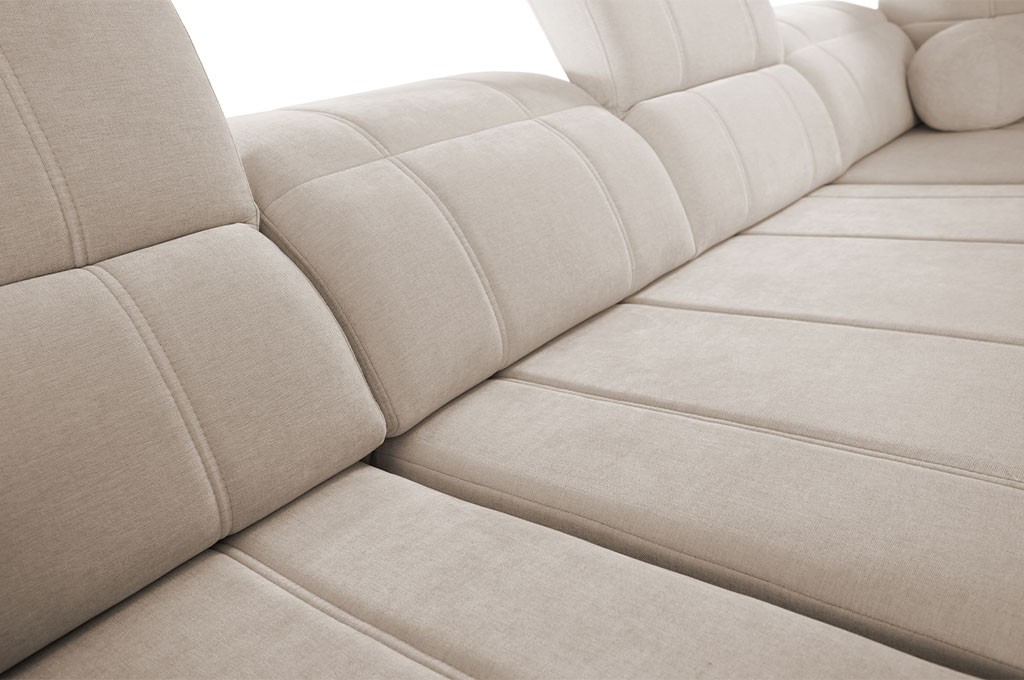 Narożnik RAFAEL III został wyposażony w funkcję spania, która pozwala w kilka chwil przekształcić narożnik w wygodne łóżko o wymiarach 138 × 212 cm.