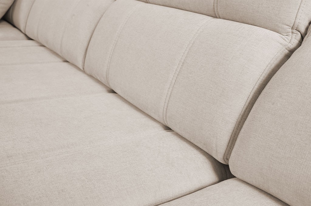 Tył obity tkaniną to element, który podkreśla staranność wykonania narożnika RAFAEL i pozwala na jego ustawienie w dowolnym miejscu w salonie – nawet na środku pomieszczenia. Dzięki temu mebel prezentuje się elegancko z każdej strony, a cała bryła zachowuje spójny, nowoczesny wygląd. To rozwiązanie zwiększa funkcjonalność mebla, jednocześnie dodając mu lekkości i estetyki.