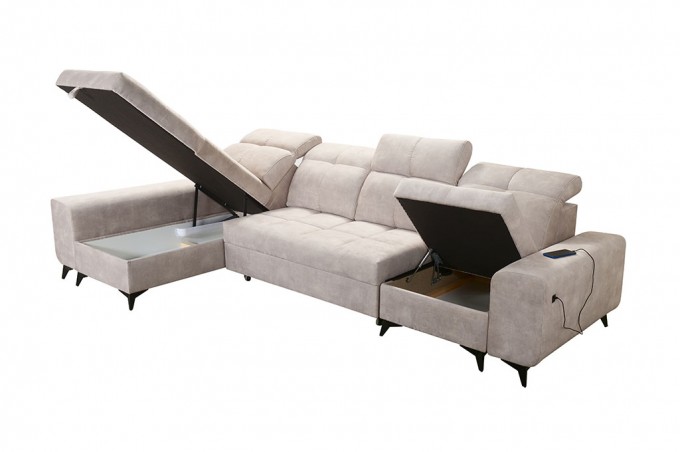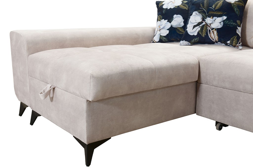Dodatkowym atutem są 2 pojemniki na pościel, które oferują dużo miejsca do przechowywania kołder, poduszek czy innych tekstyliów. Dzięki temu łatwo utrzymać porządek w salonie i maksymalnie wykorzystać przestrzeń.